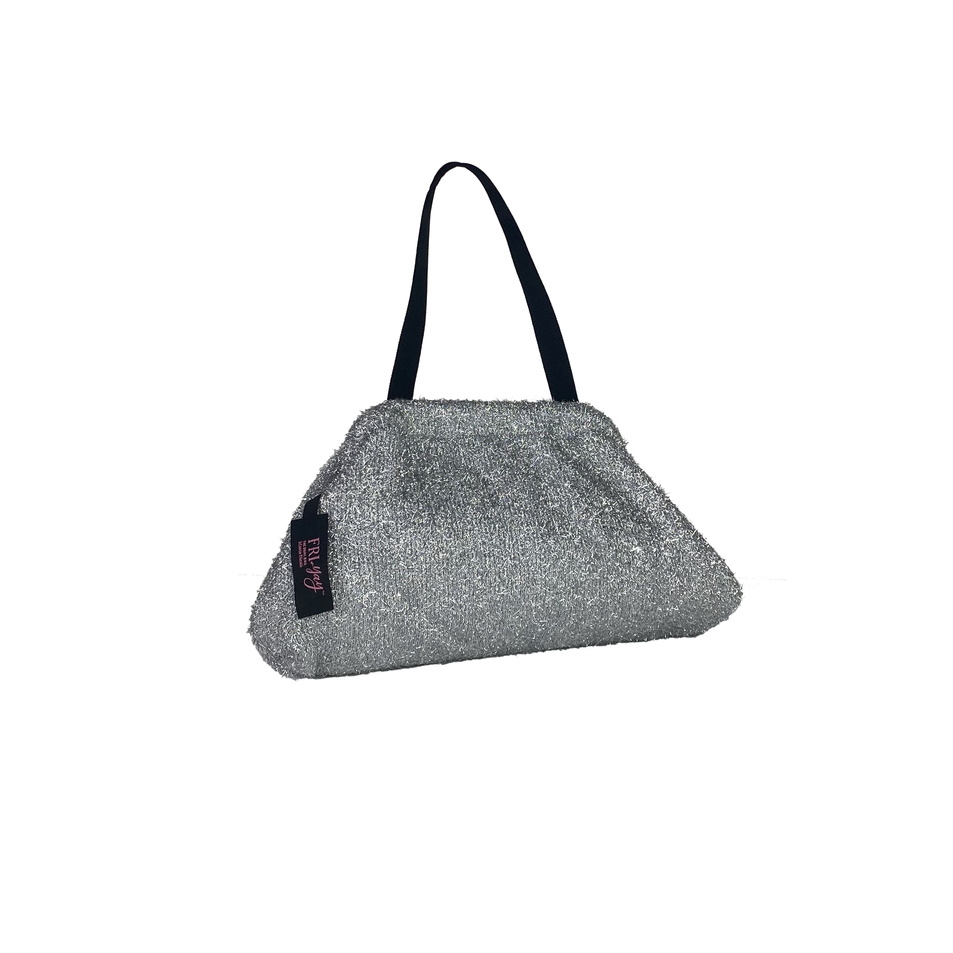 Raffinata, luminosa e incredibilmente versatile, la Borsa SHABBY della Linea Gift è l’accessorio perfetto per chi desidera aggiungere un tocco brillante al proprio stile. Realizzata in una maglia lurex dal finish argentato, riflette la luce con un effetto scintillante ma elegante, ideale per serate, eventi speciali o per impreziosire i look quotidiani. La sua forma morbida e strutturata si adatta facilmente al contenuto, mentre il manico nero offre un contrasto moderno e una presa comoda.