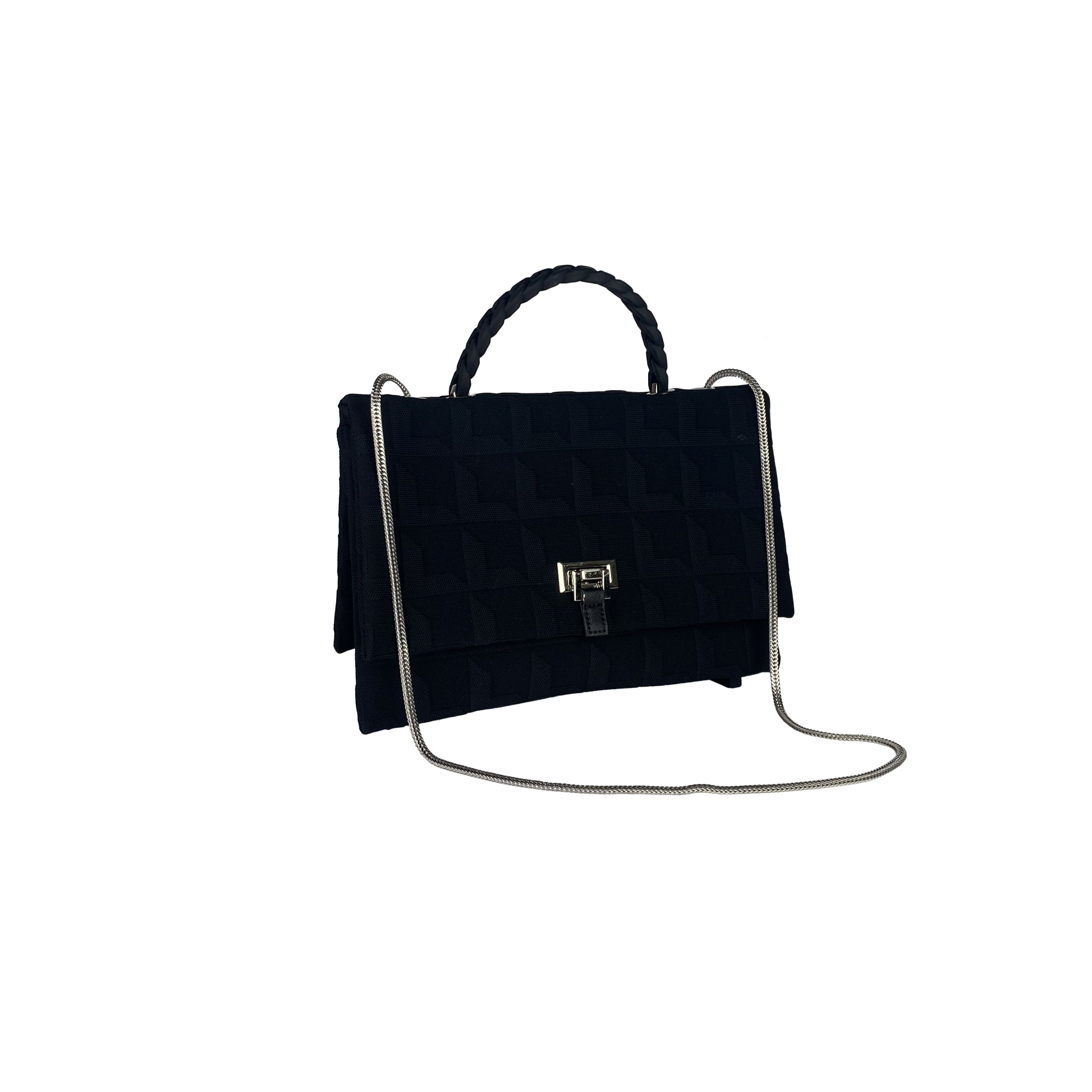 La Laura Bag di Friyay è una borsa dall’estetica architettonica e sofisticata, realizzata in un unico telo di maglia ripiegato in modo sapiente per creare un particolare effetto libro, che dona volume e originalità alla struttura. Il design è valorizzato da una texture 3D geometrica, elegante e moderna, che rende la borsa immediatamente riconoscibile. Dotata di tracolla in catena regolabile, può essere indossata sia a spalla sia crossbody, mentre il manico con dettaglio in silicone aggiunge un tocco contemporaneo e una maggiore presa. I piedini in silicone sul fondo proteggono la borsa e ne migliorano la stabilità.