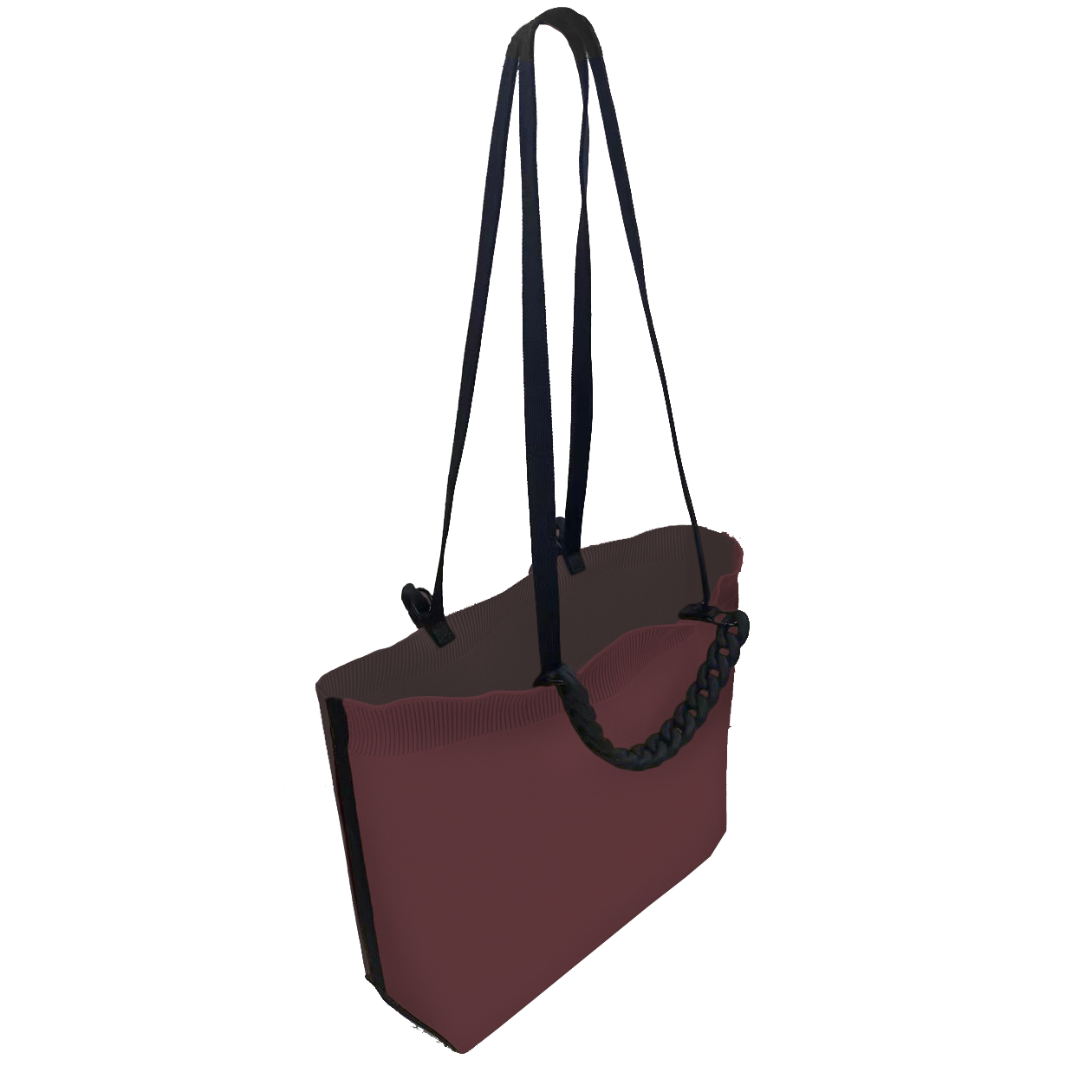 La borsa MN è realizzata interamente in maglia. In questo modello si percepisce tutto il comfort, la praticità e la leggerezza caratteristici del materiale.